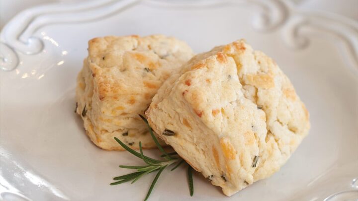 “Smoked Gouda and Rosemary Scones, made with self-rising flour, fresh rosemary, and gouda cheese.” A warm and savory component to a winter afternoon tea.