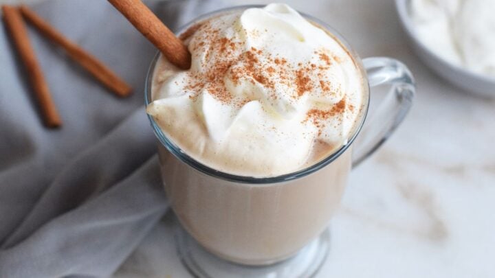 This easy Maple Cinnamon Latte is a delicious, lightly sweetened latte flavored with pure maple syrup and cinnamon. Made with espresso or brewed coffee, it's a fall morning beverage you'll love.